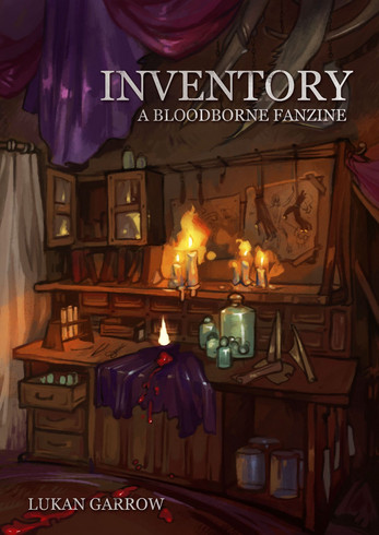 INVENTORY is a 16 page fanzine inspired by Bloodborne (FromSoftware, Inc, PS4, 2015). Each entry is a piece of flash-fiction focussing on an item from the game and features hand-painted art to accompany it.